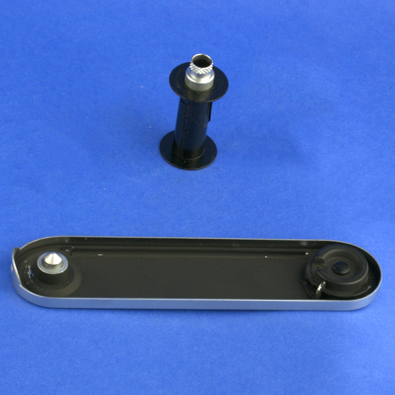 There are characters engraved on the back of the camera and a small area of leatherette is missing on the film door. Aside from that the camera is in beautiful condition with some marks mostly on the bottom plate but no dings or dents. Box and accessories show more wear.