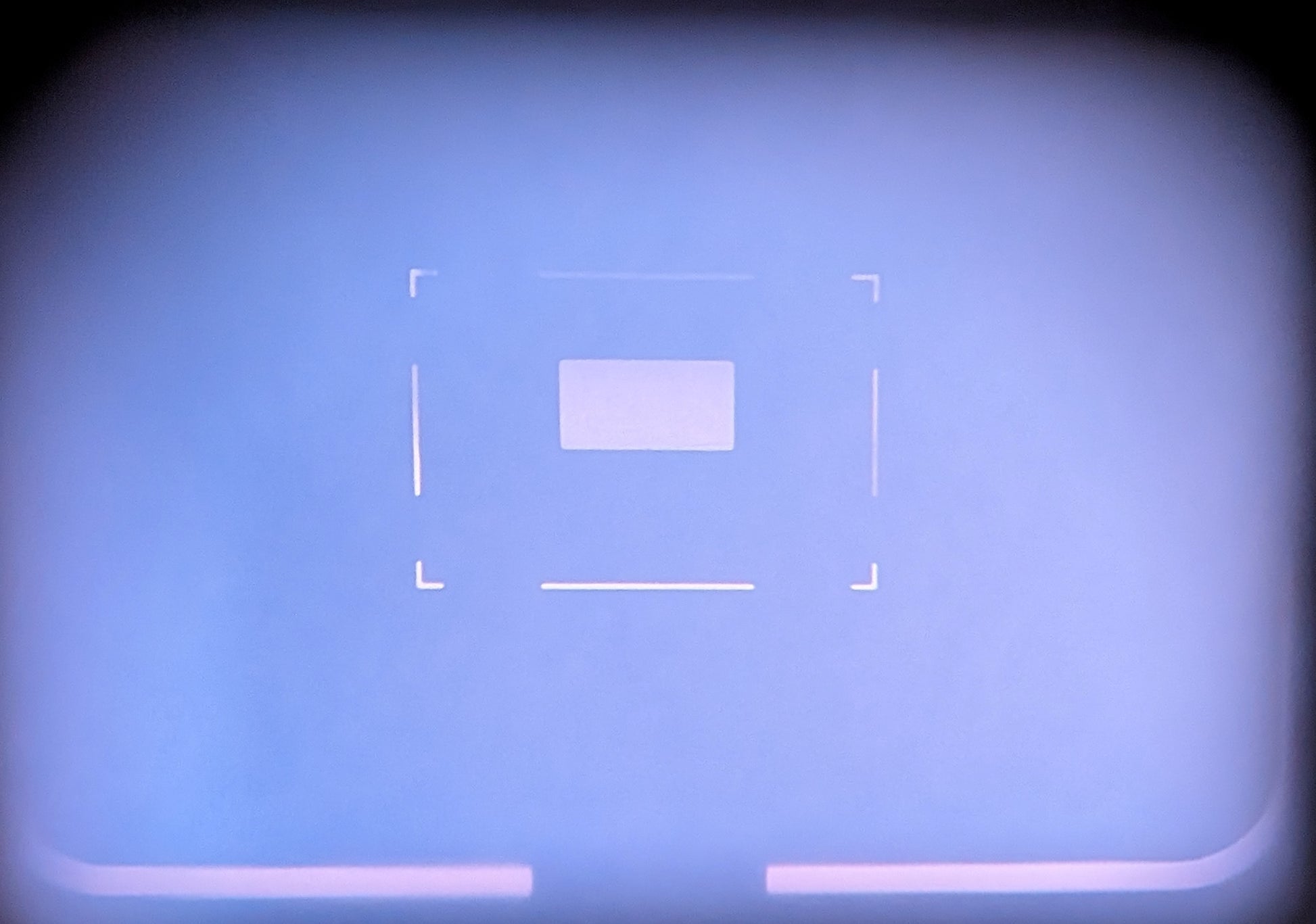 The viewfinder has a light haze and the rangefinder patch is bright and contrasty.