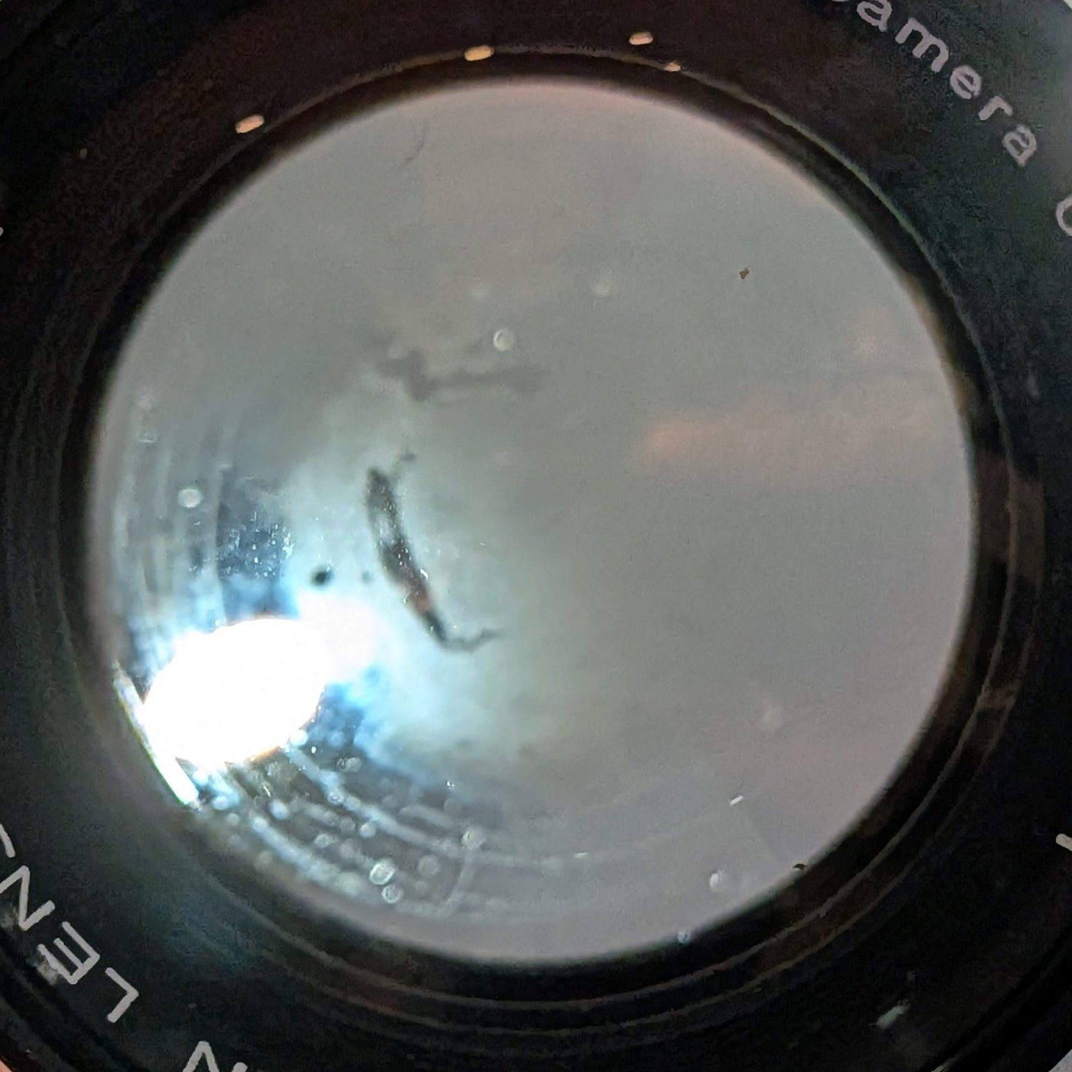 In nice cosmetic condition but has a heavy haze inside. Aperture and focus rings move smoothly.