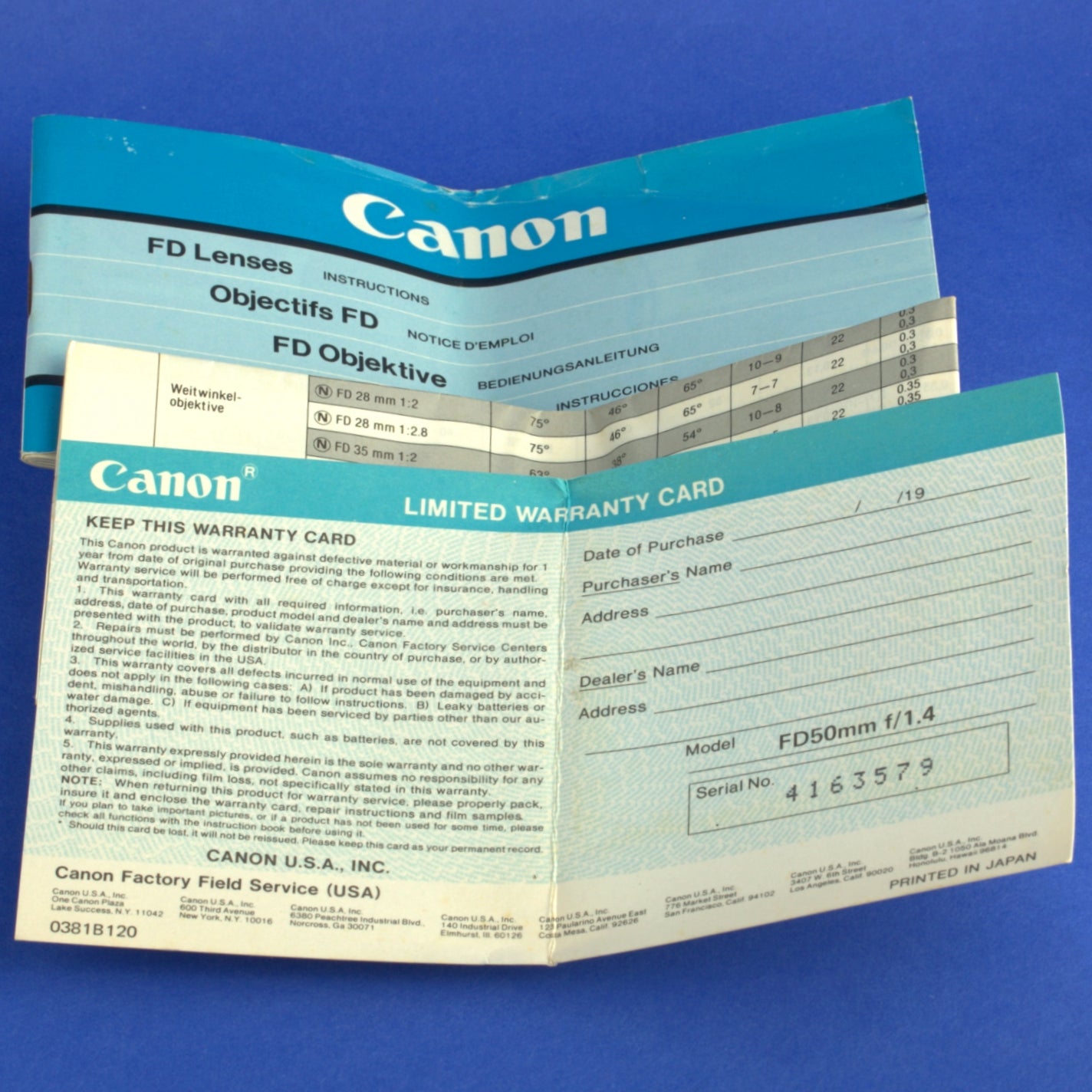 Canon FD 50mm 1.4 Lens Beautiful Condition