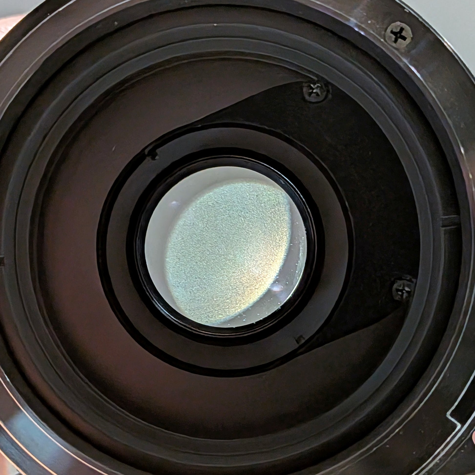 Cosmetically in mint condition. Both front and rear elements look clean but if you shine a light from one end to the other the lens appears to have haze inside.