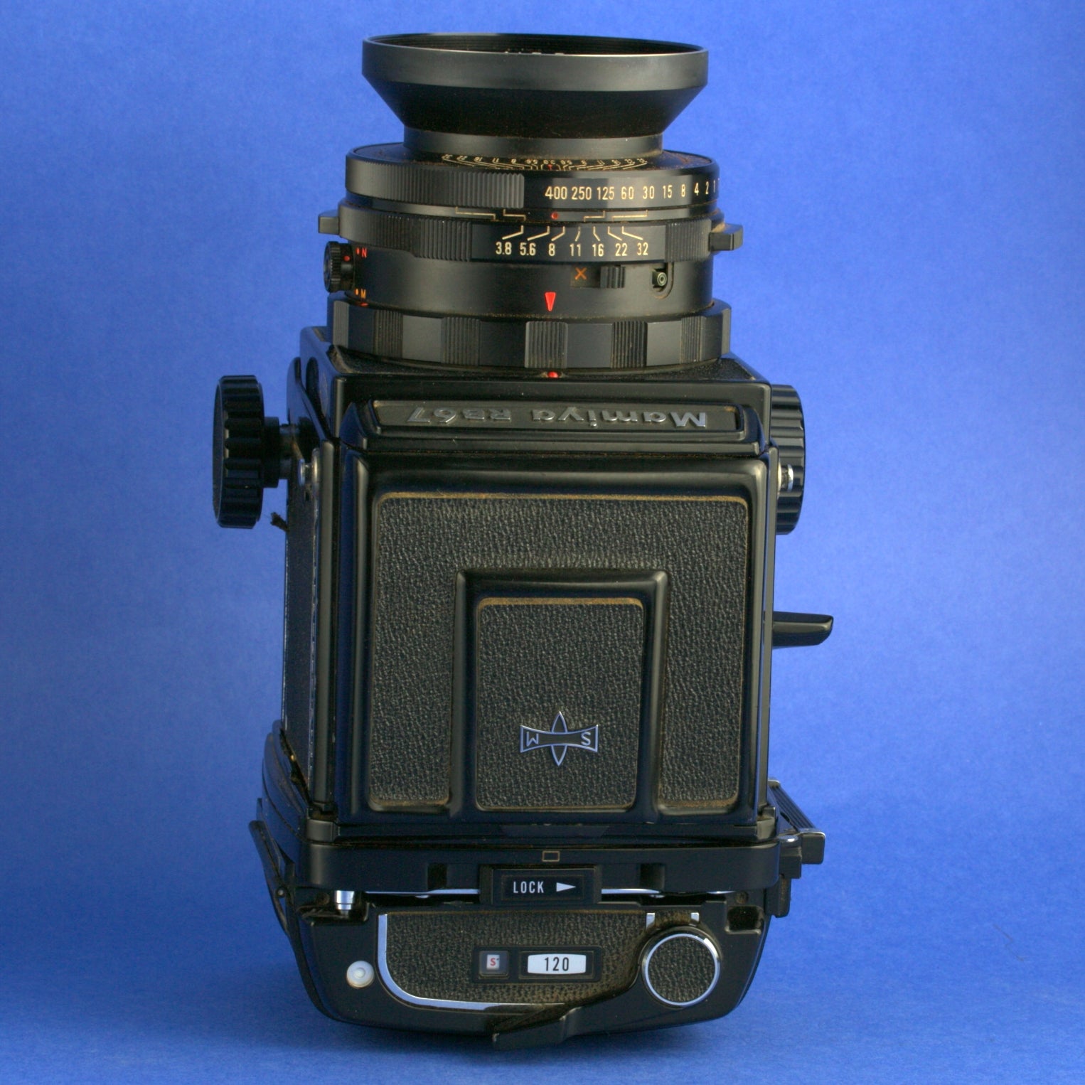 It comes with 90mm 3.8 Lens, Waist Level Finder, 120 Film Back with Insert, Lens Cap.