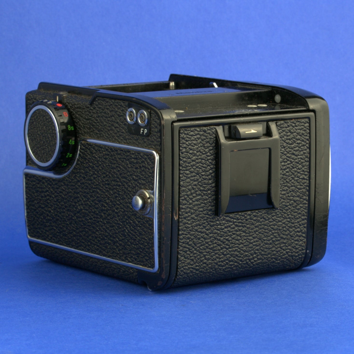 Non-working body only, missing focusing screen, winder, and film insert. The battery chamber has damage and a battery cannot be inserted.