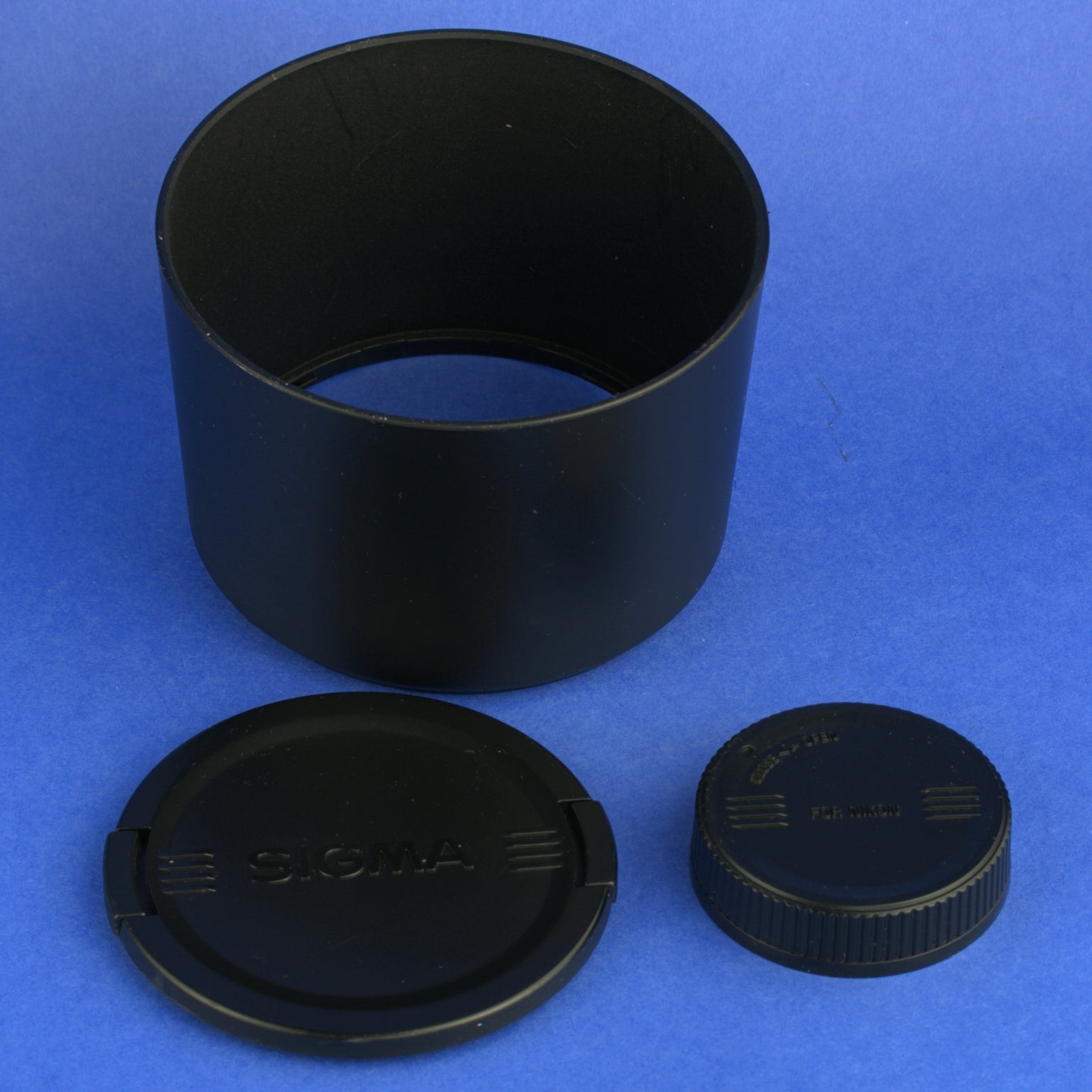 It comes with Lens Hood, Caps, Case.