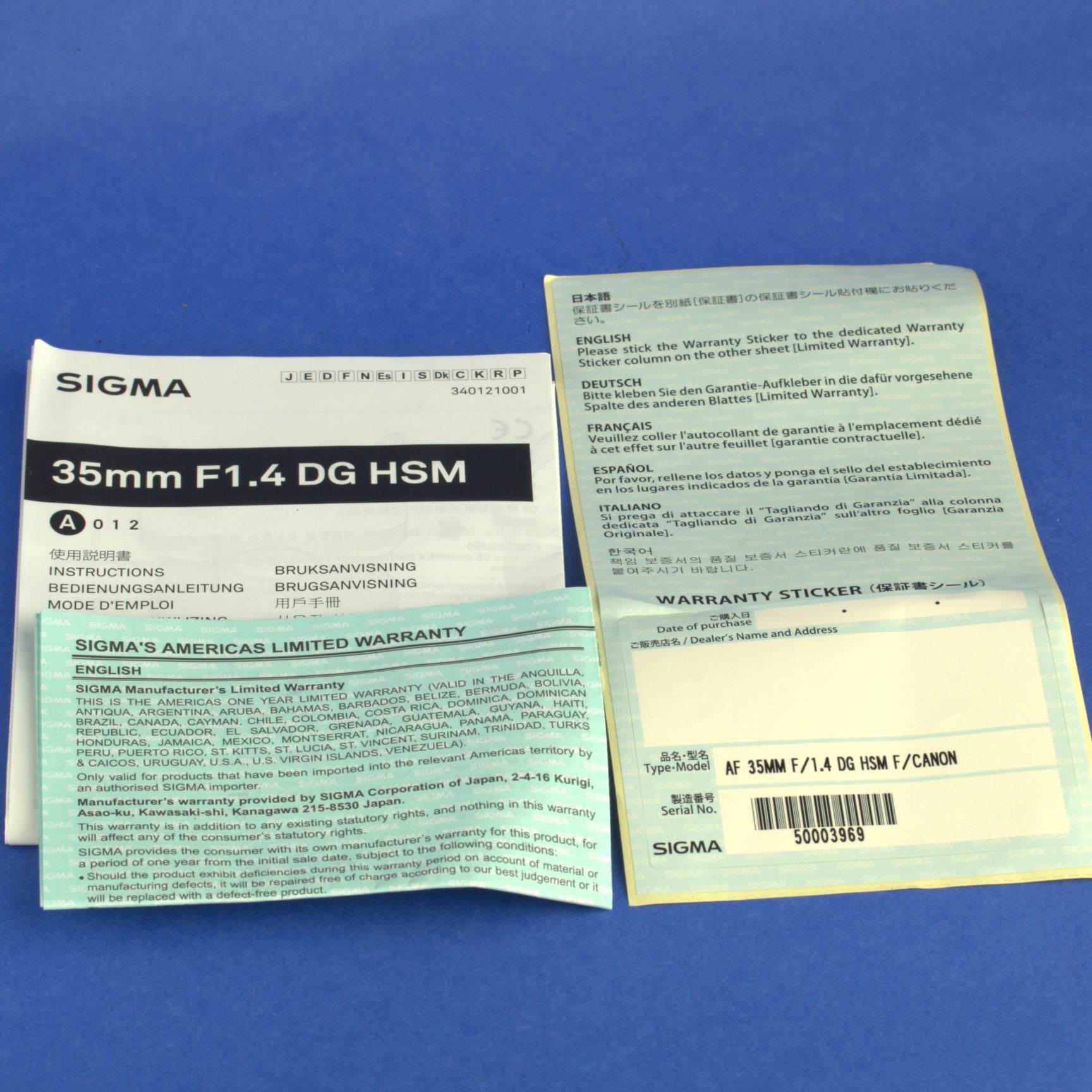 Sigma 35mm 1.4 Art Lens Canon EOS Mount Near Mint Condition